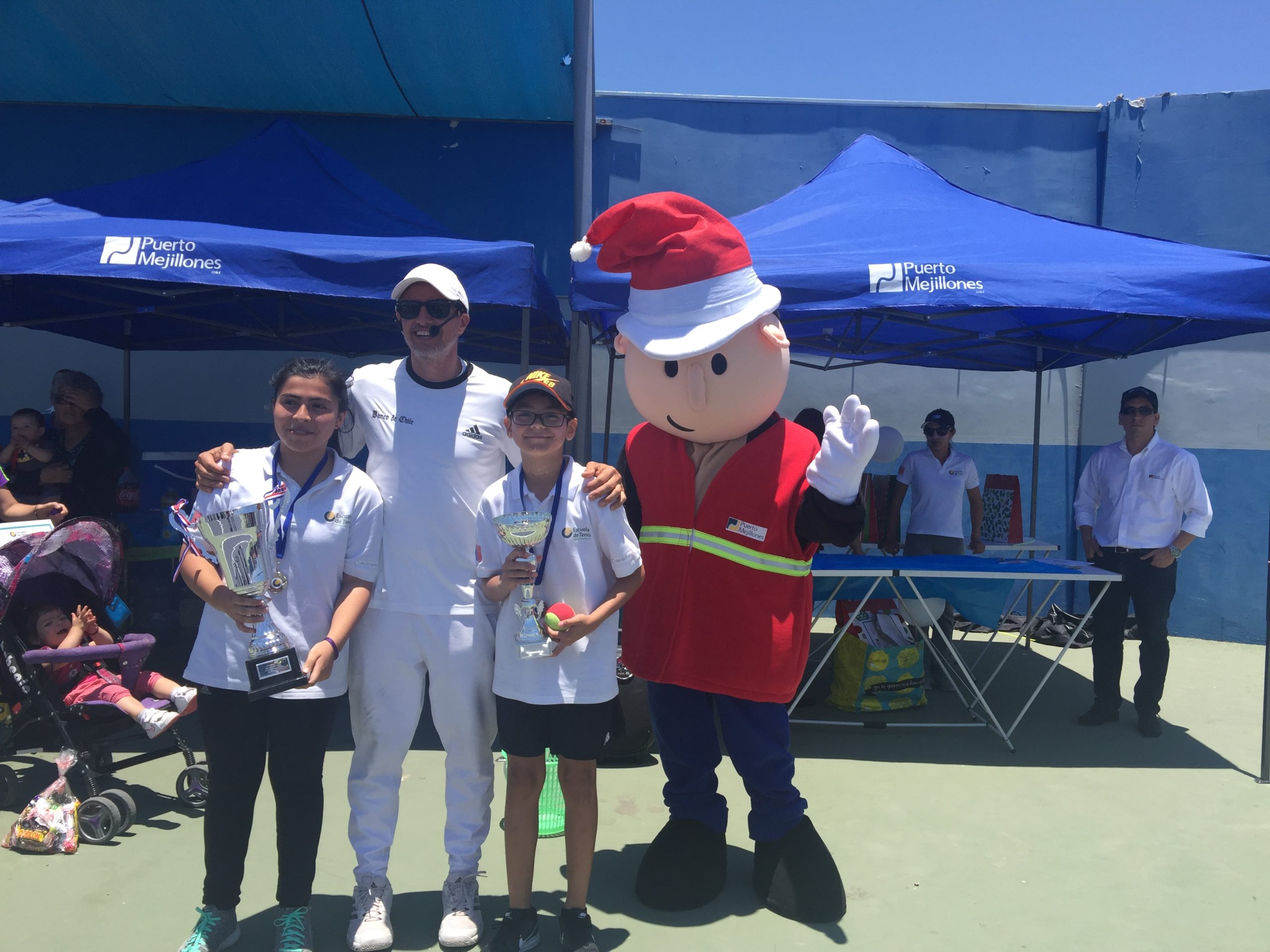 Por otra parte, durante la actividad se destacó la labor de Paulina Jorquera y Felipe Castillo, profesores de la iniciativa liderada por de la Peña, quienes este año han desarrollado diversas iniciativas con el fin de potenciar la participación de los jóvenes deportistas en torneos regionales. Cabe destacar que el objetivo de esta iniciativa, apoyada por la Ilustre Municipalidad de Mejillones y Puerto Mejillones, es promocionar el deporte y vida sana entre los jóvenes de la comuna, potenciando sus habilidades en torno al tenis a través de entrenamientos que mezclan el trabajo físico con el psicológico.